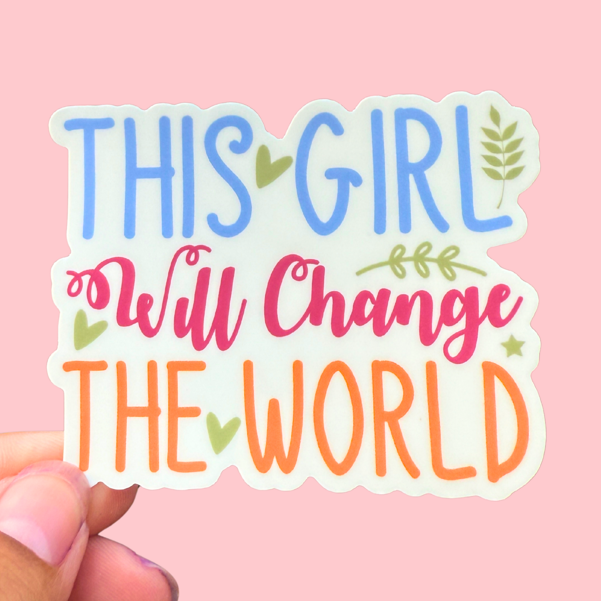 Celebrate strength and positivity with this empowering “This Girl Will Change the World” sticker 🌍✨